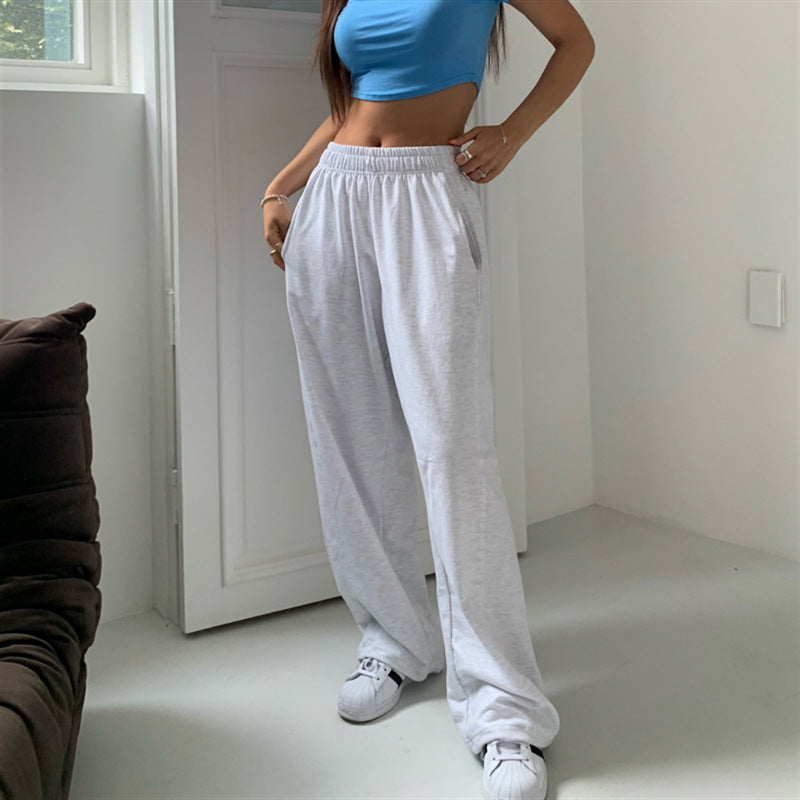 Solid color simple all-match sports casual loose slim drape wide-leg pants women's cotton 6 colors