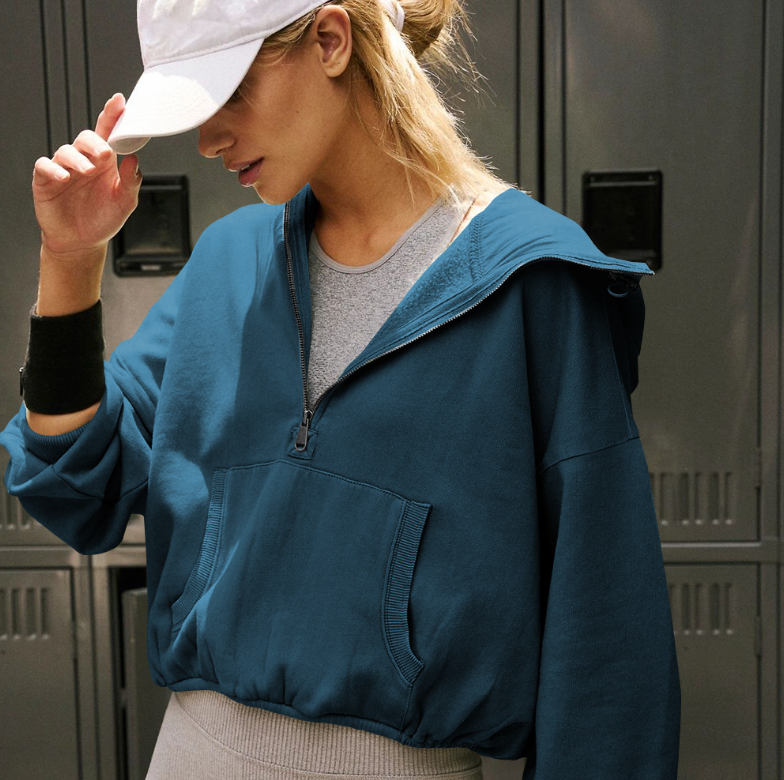 Short polar fleece sport hoodie half zipper thick gym top jacket 3colors