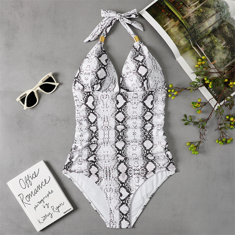 New One-piece Swimsuit Conservative Leopard Print Halter Neck Red Halter Swimsuit 5 Colors