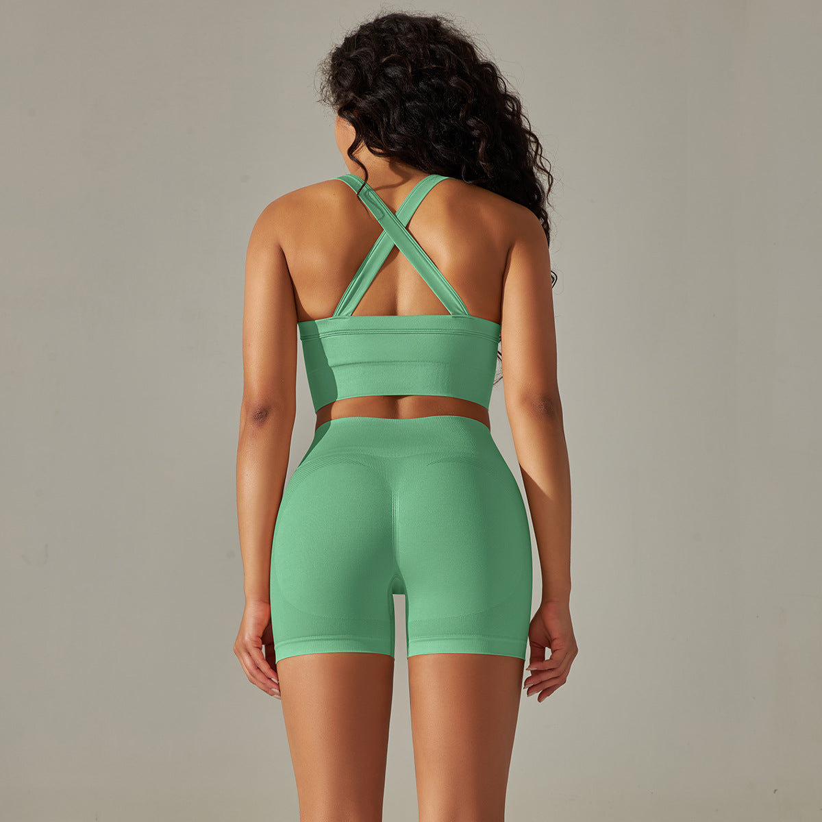 • 2 seamless beautiful back cross double straps sports vest bra set running fitness yoga pants 14 colors