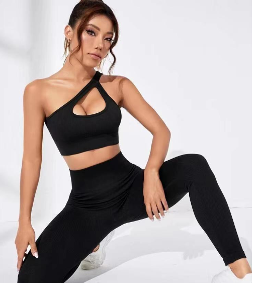 Seamless One Shoulder Bra Pants 2-piece set of 4 colors
