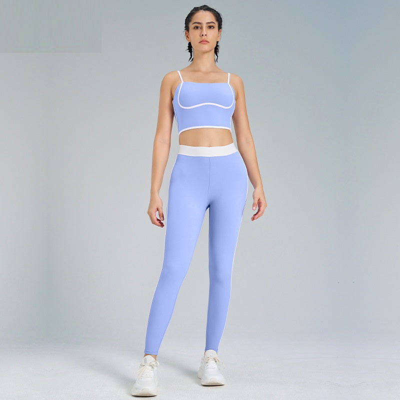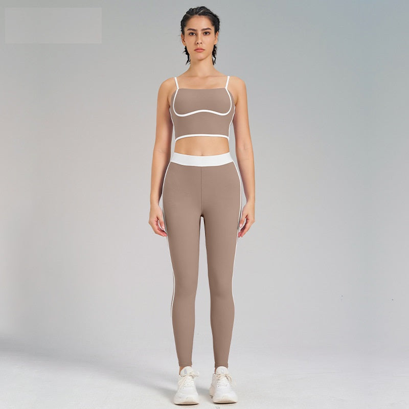 Two-piece outdoor running fitness strap yoga suit with double-sided buff