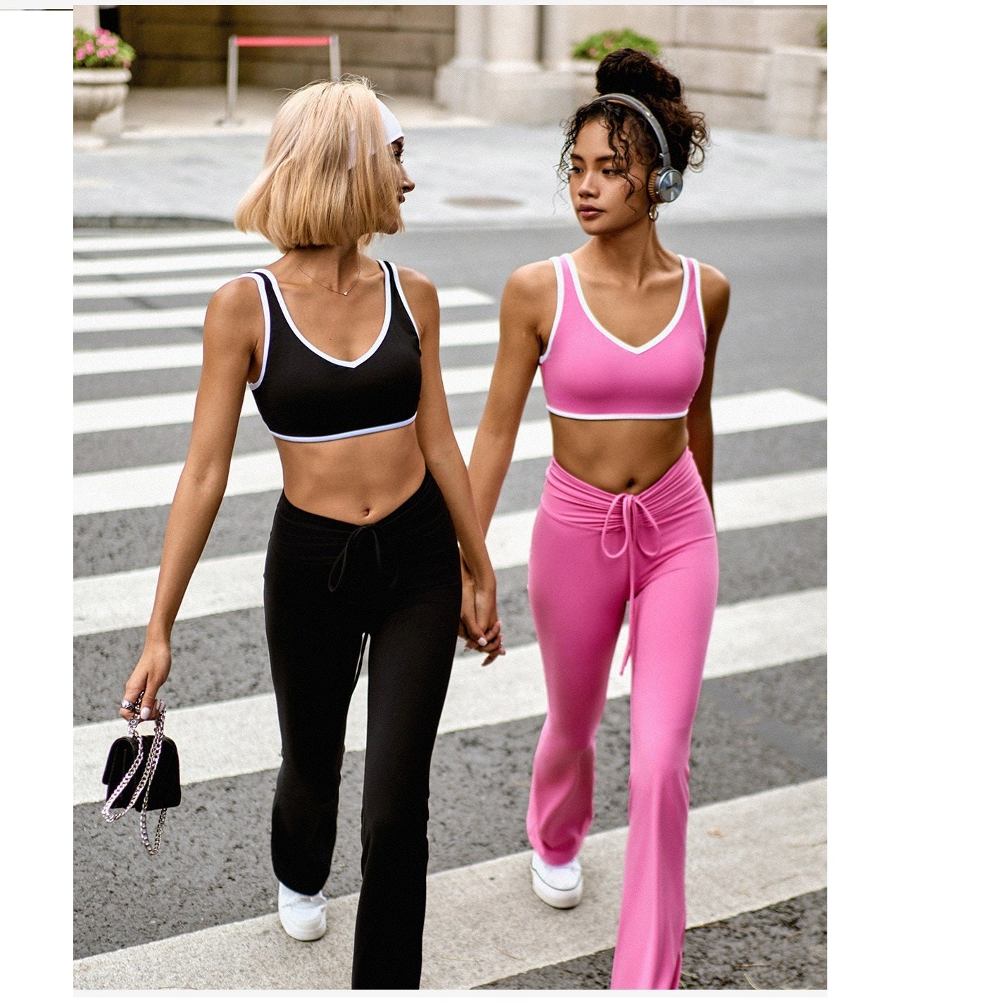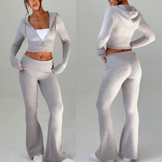 HR24057 Sexy skinny long-sleeved bell bottoms two-piece set