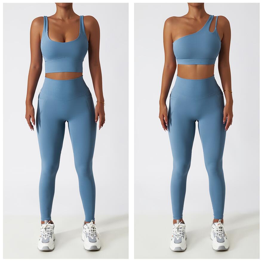 Tight brushed yoga set High waist one-shoulder casual running set 5034-2