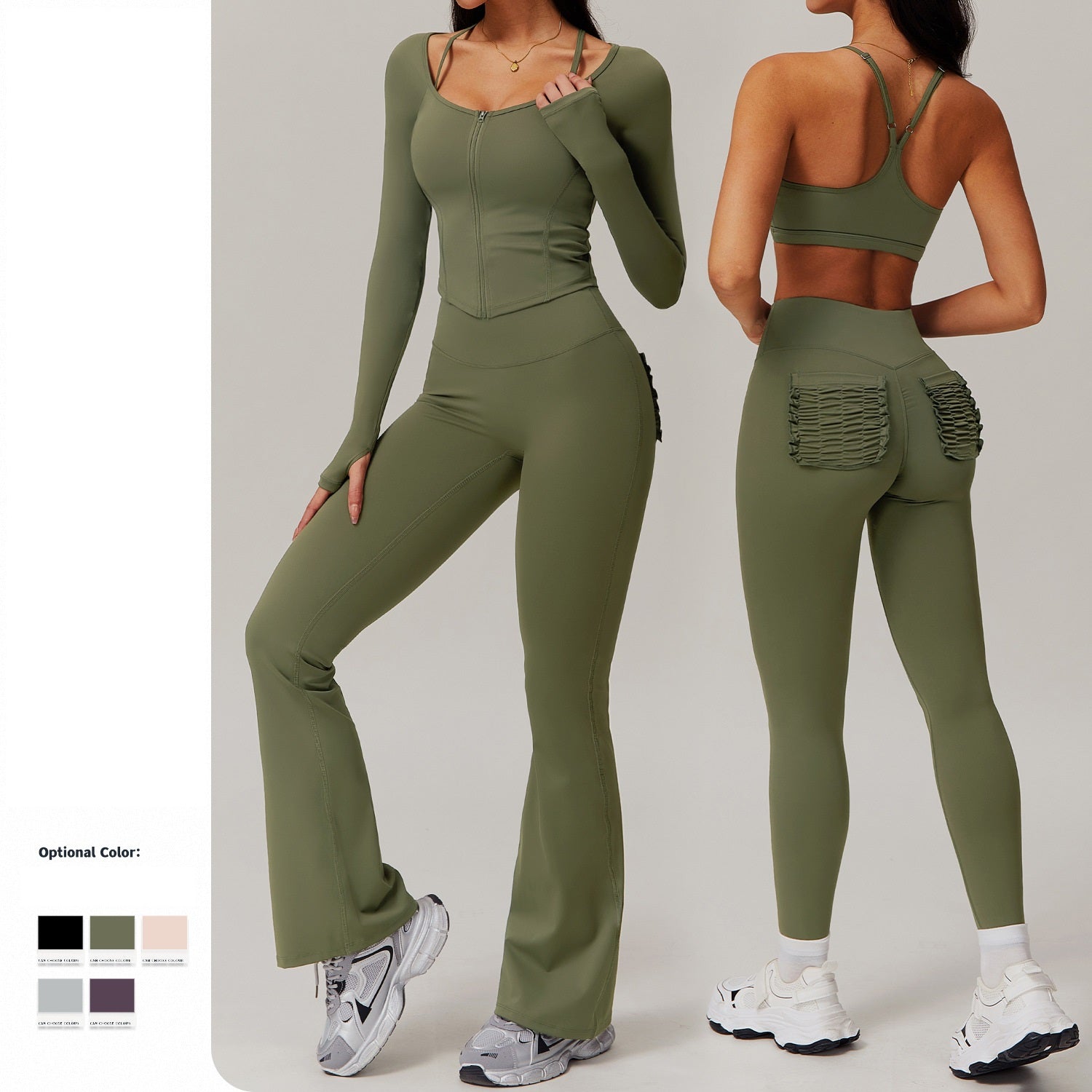 Women's fitness suit Running jacket Quick dry exercise three-piece long sleeve blouse yoga suit