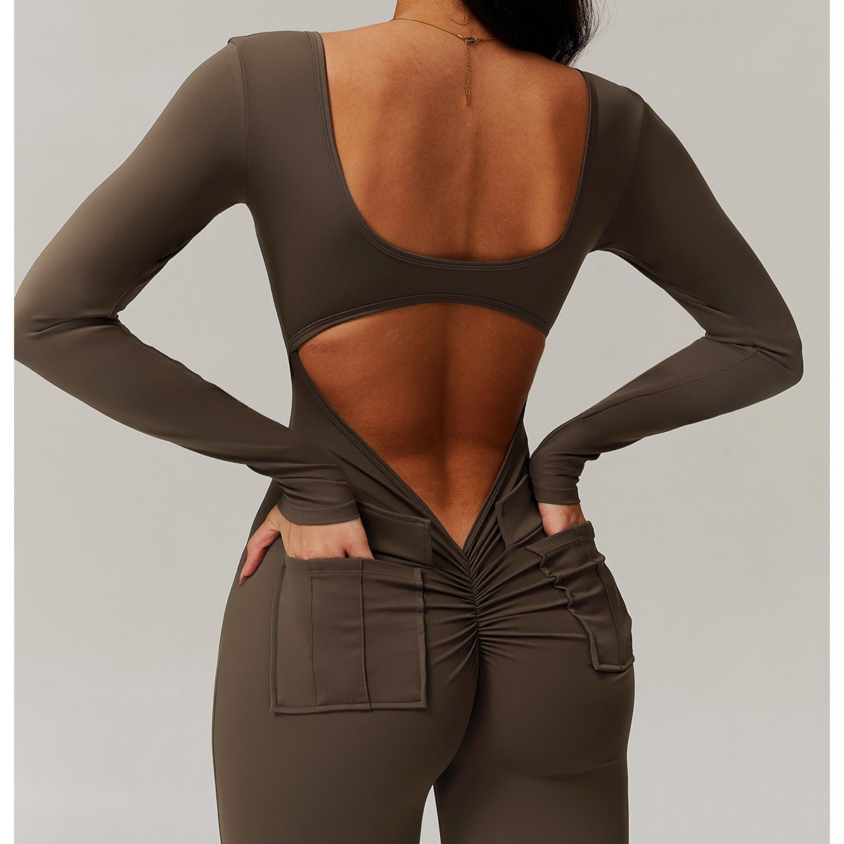 Hollow-out back yoga onesie with multi-pocket hip lift 8902