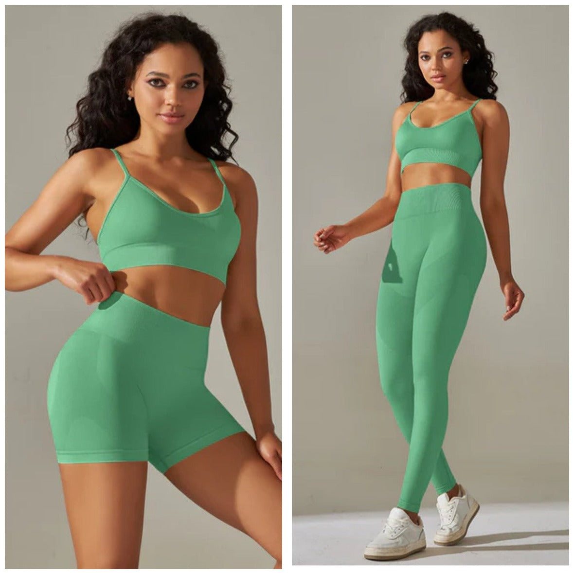 Women's Three-Piece Tight Yoga Suit Suit Plus Size Sports Fitness Suit 7 Colors