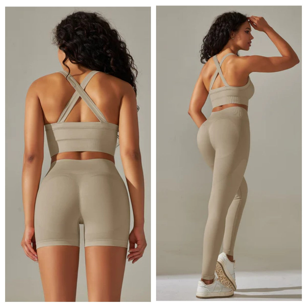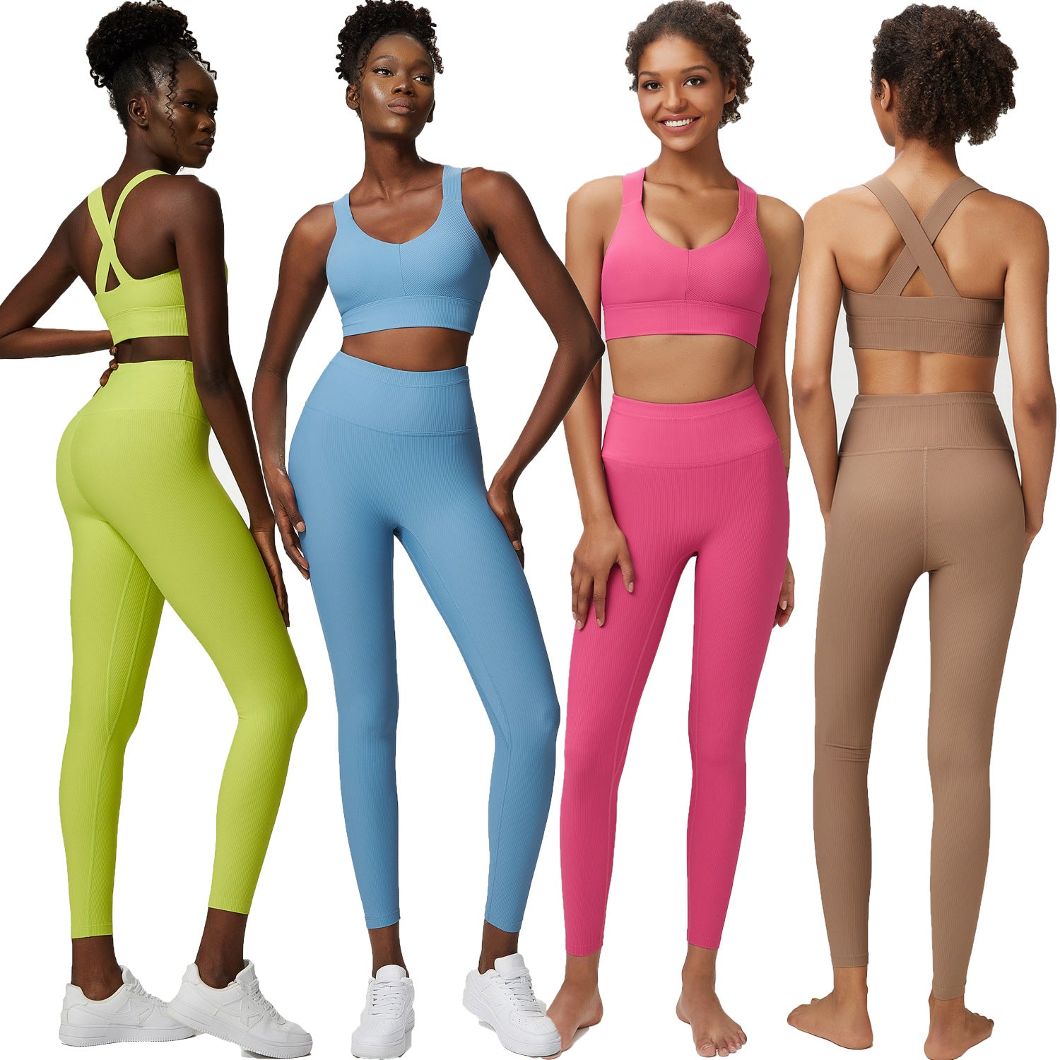 Nude yoga dress cross back sports fitness two-piece set 5 colors