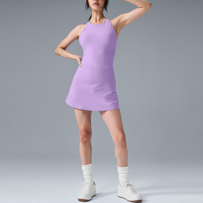 Nude collar tennis skirt Removable breast pad anti-exposure one-piece tennis outdoor sports