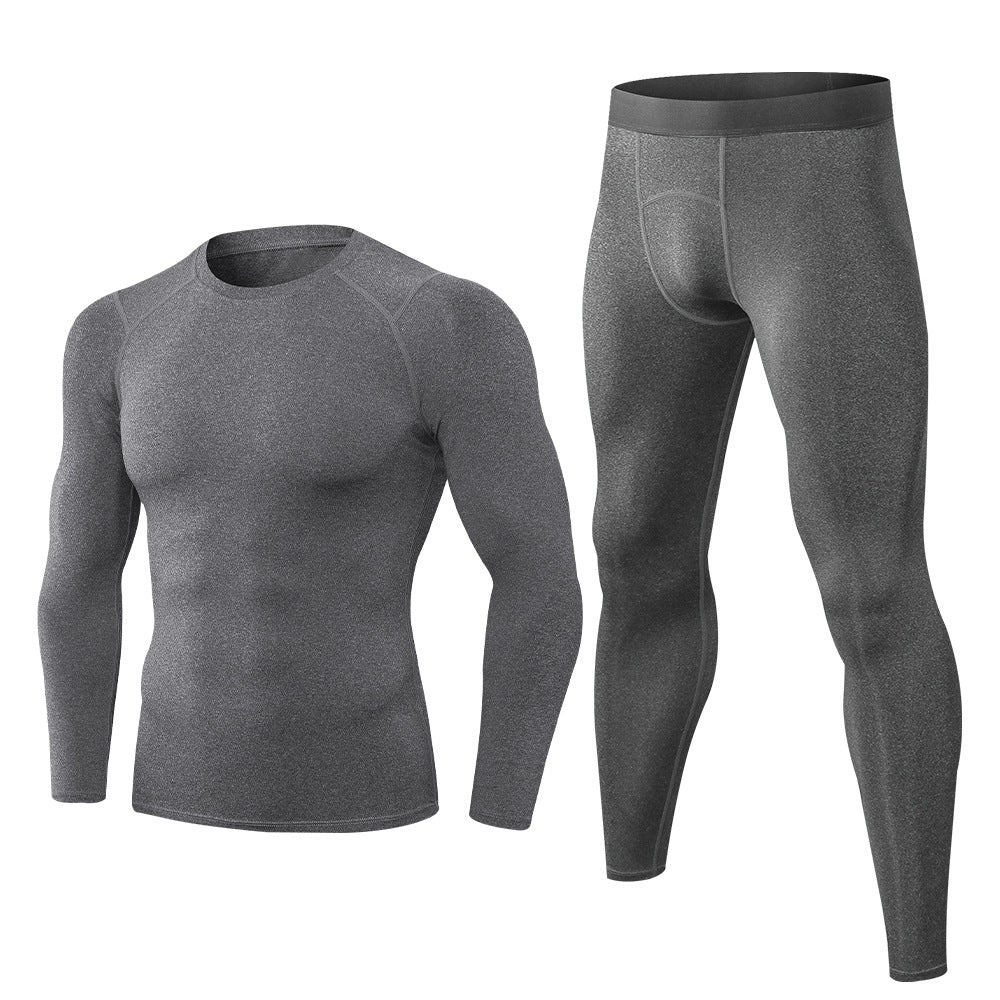 • 11515+11323Men's quick-drying fitness suit high elastic tight training long-sleeved trousers sportswear two-piece set 5 colors