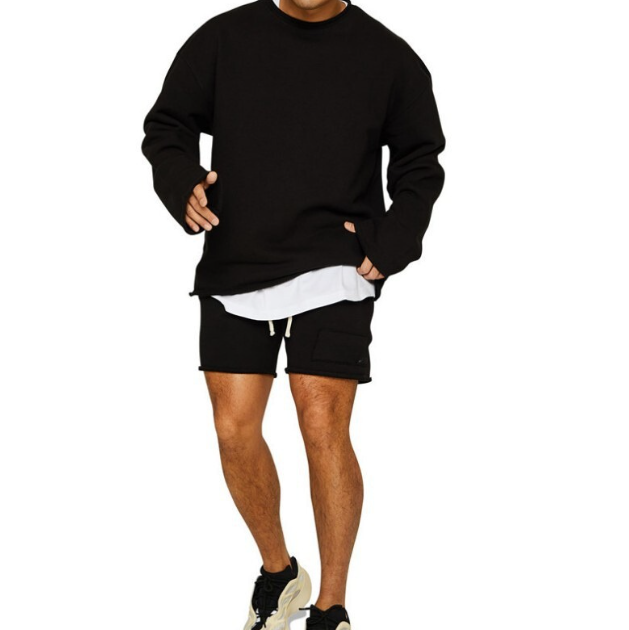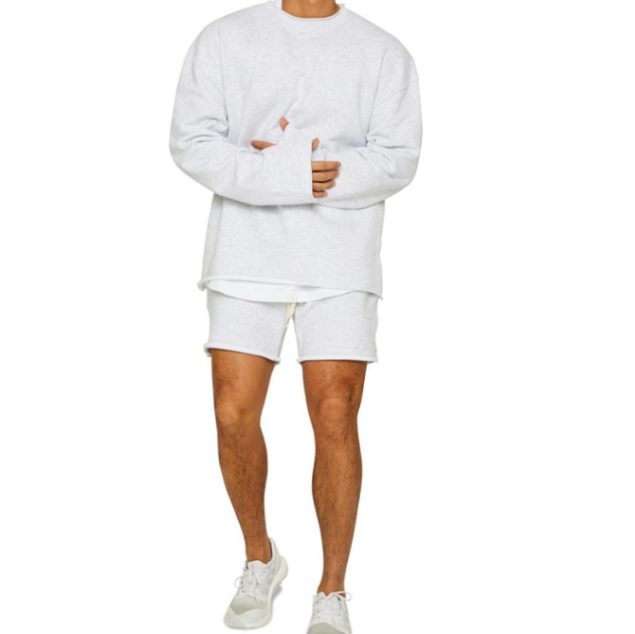 Tracksuit crew-neck hoodie with raw edge and bottom