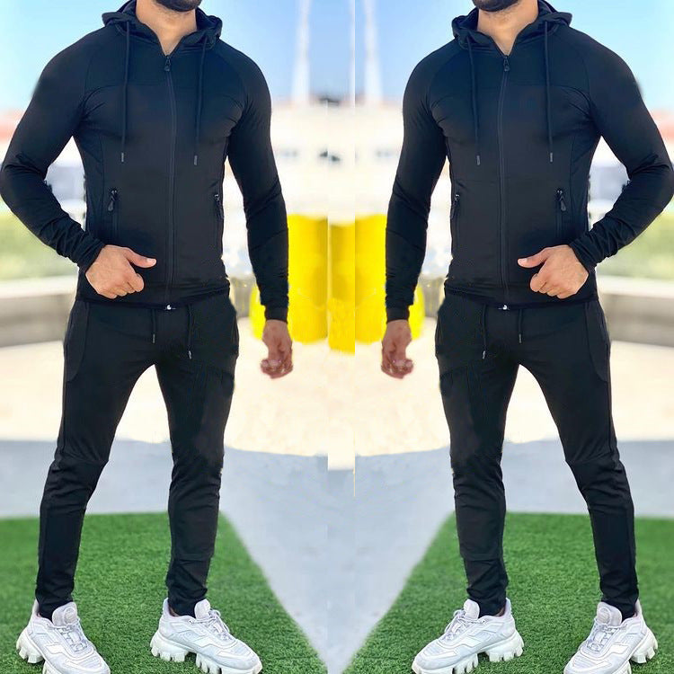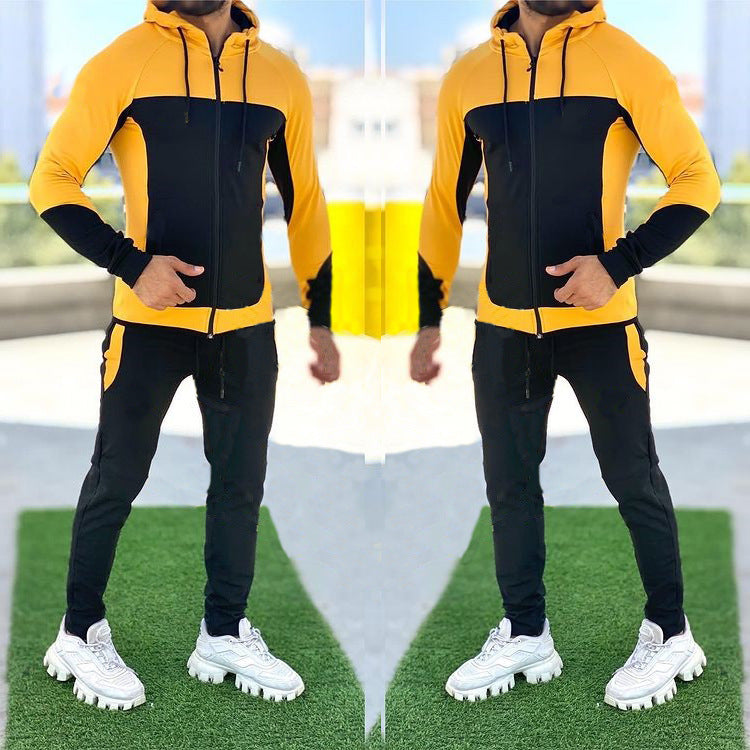 Leisure sports suit color matching style men's personalized hooded trendy sports suit 7 colors