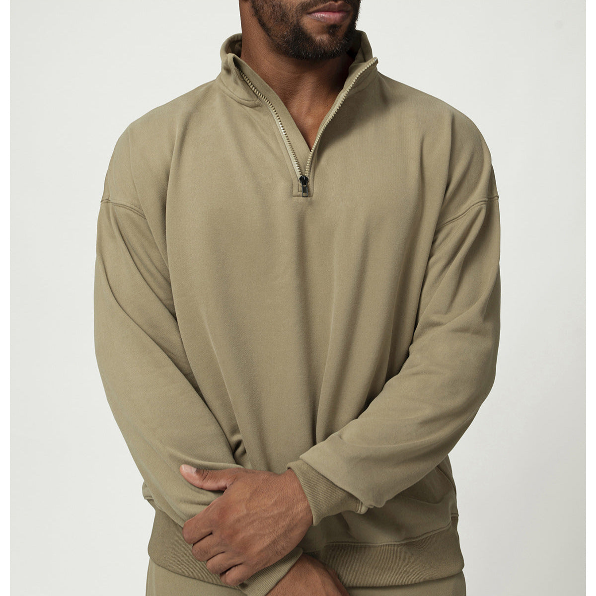 Men's quick-drying half-zip solid color workout high-spring long-sleeved top