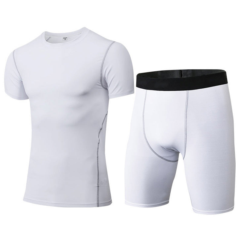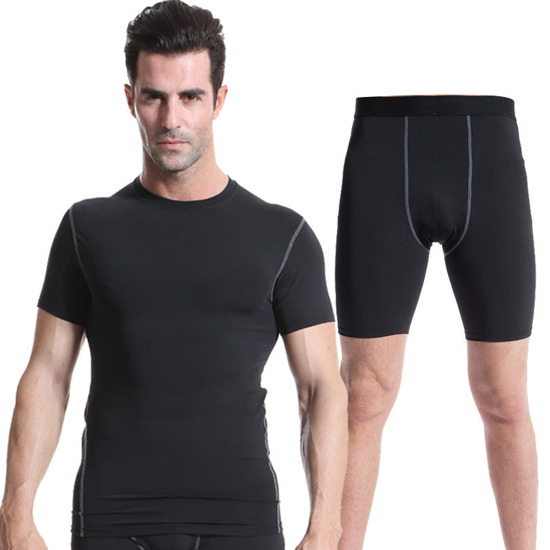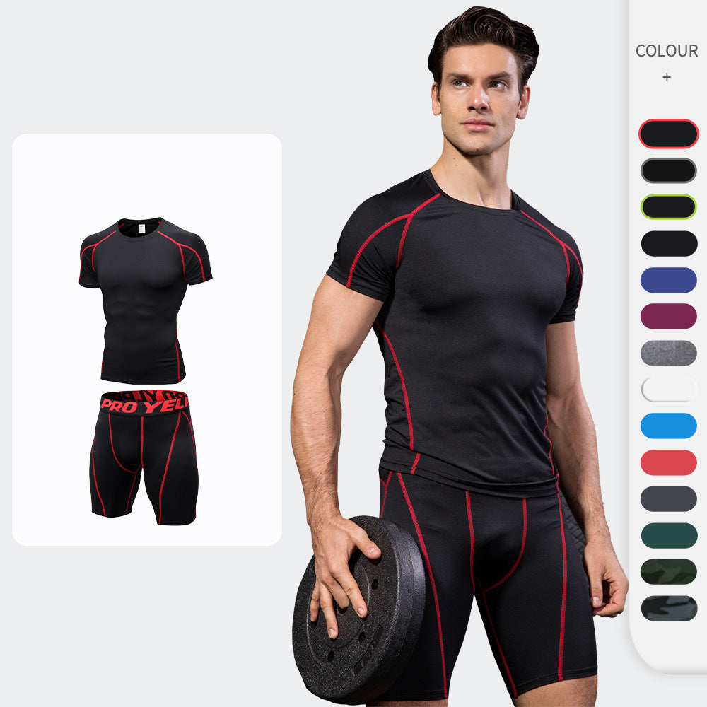 1003+1004 Men's PRO Tight Training Clothes Sports Fitness Suit Perspiration Quick-drying Short Sleeves + Shorts