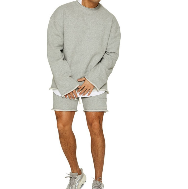 Tracksuit crew-neck hoodie with raw edge and bottom