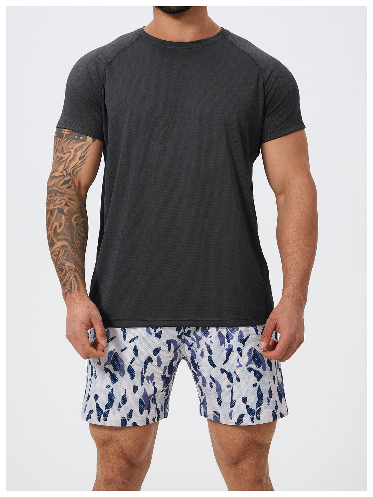 1054+1053 men's fitness suit perspiration quick-drying training short-sleeved tight running shorts