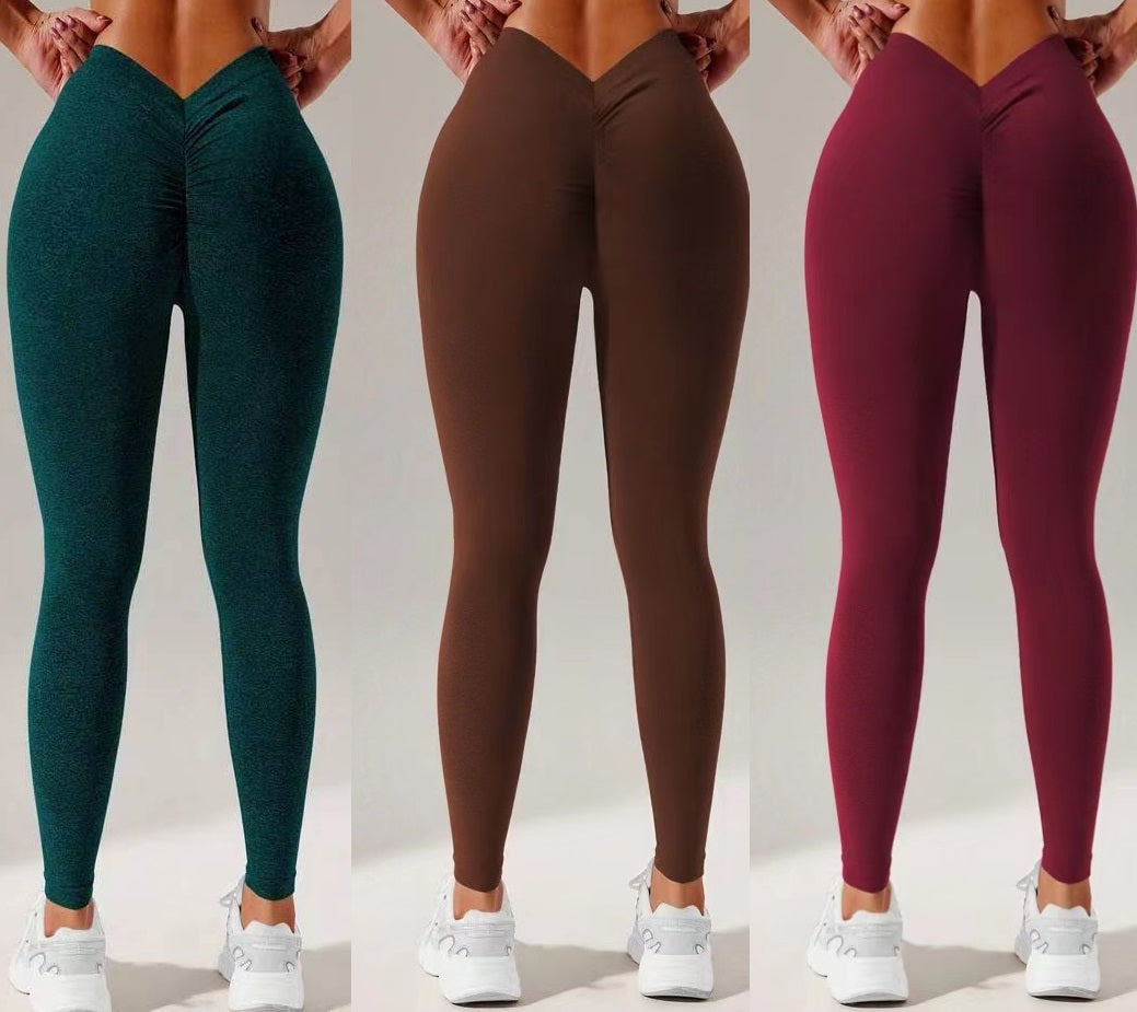 Burst V-waist solid color leopard print seamless high waist hip lift fitness pants 10 color