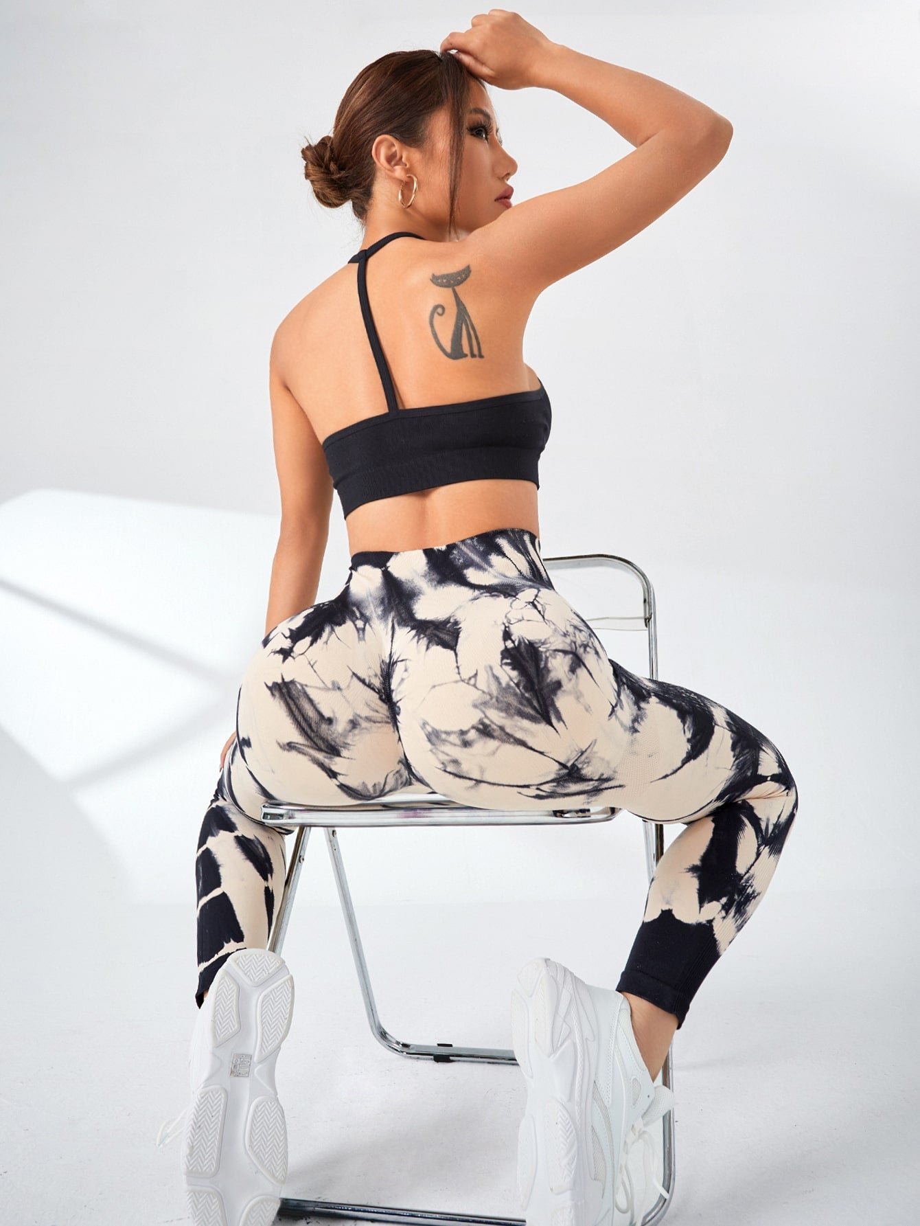 Side cutout tie dye yoga pants high waist and hip lift 7 color