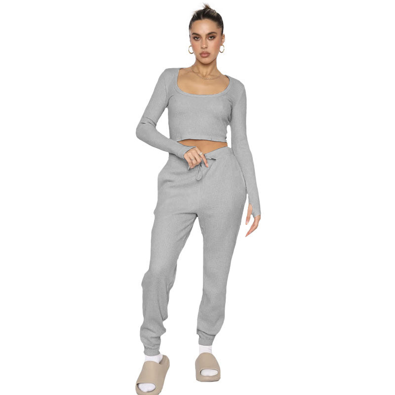 211278U collar pullover long-sleeved two-piece stylish casual pants suit 6 colors